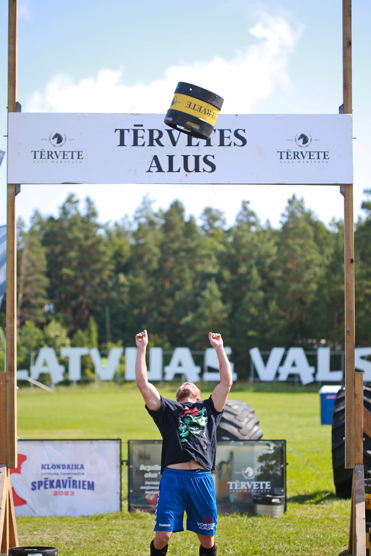 Latvijas Spēkavīru čempionāta 2023 3. posmā - Tērvetes kausa izcīņā pirmo vietu kopvērtējumā ieguvis lietuvietis Tomas Sliupas
