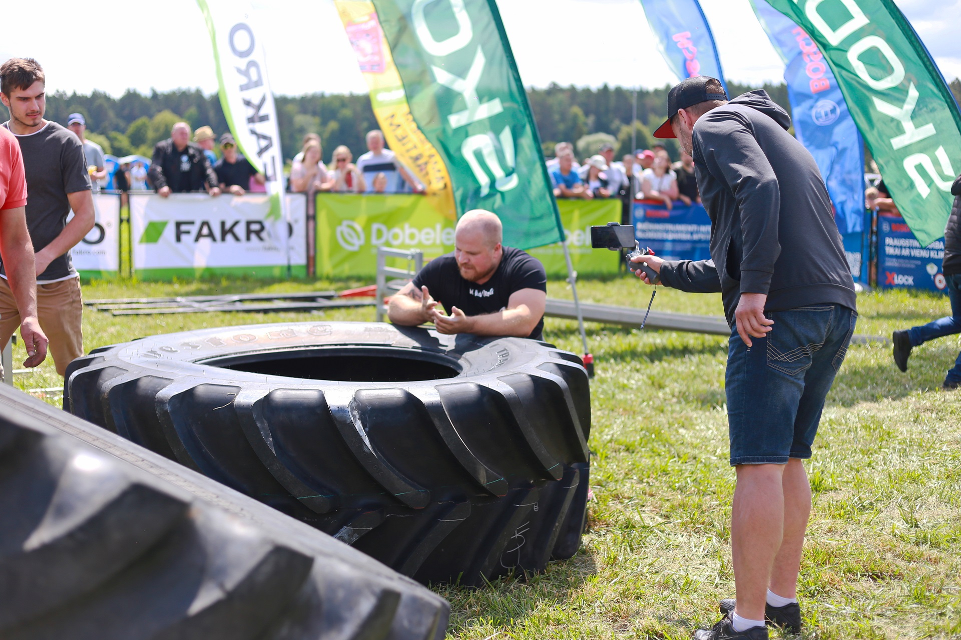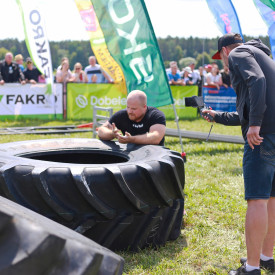 FAKRO, GALECO un FK Industry stafete - riepas velšana 350kg (2x), 400kg (1x) un fermera pastaiga 100kg katrā rokā 20m: