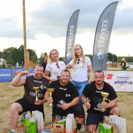 FAKRO, GALECO un FK INDUSTRY stafete - riepas velšana 350kg (4x) un fermera pastaiga 100kg katrā rokā 20m: