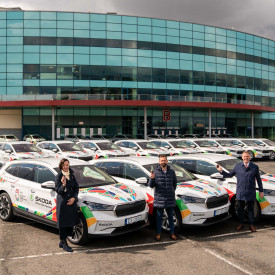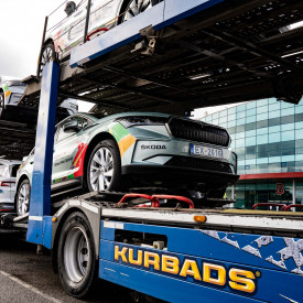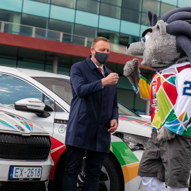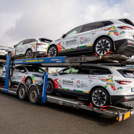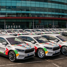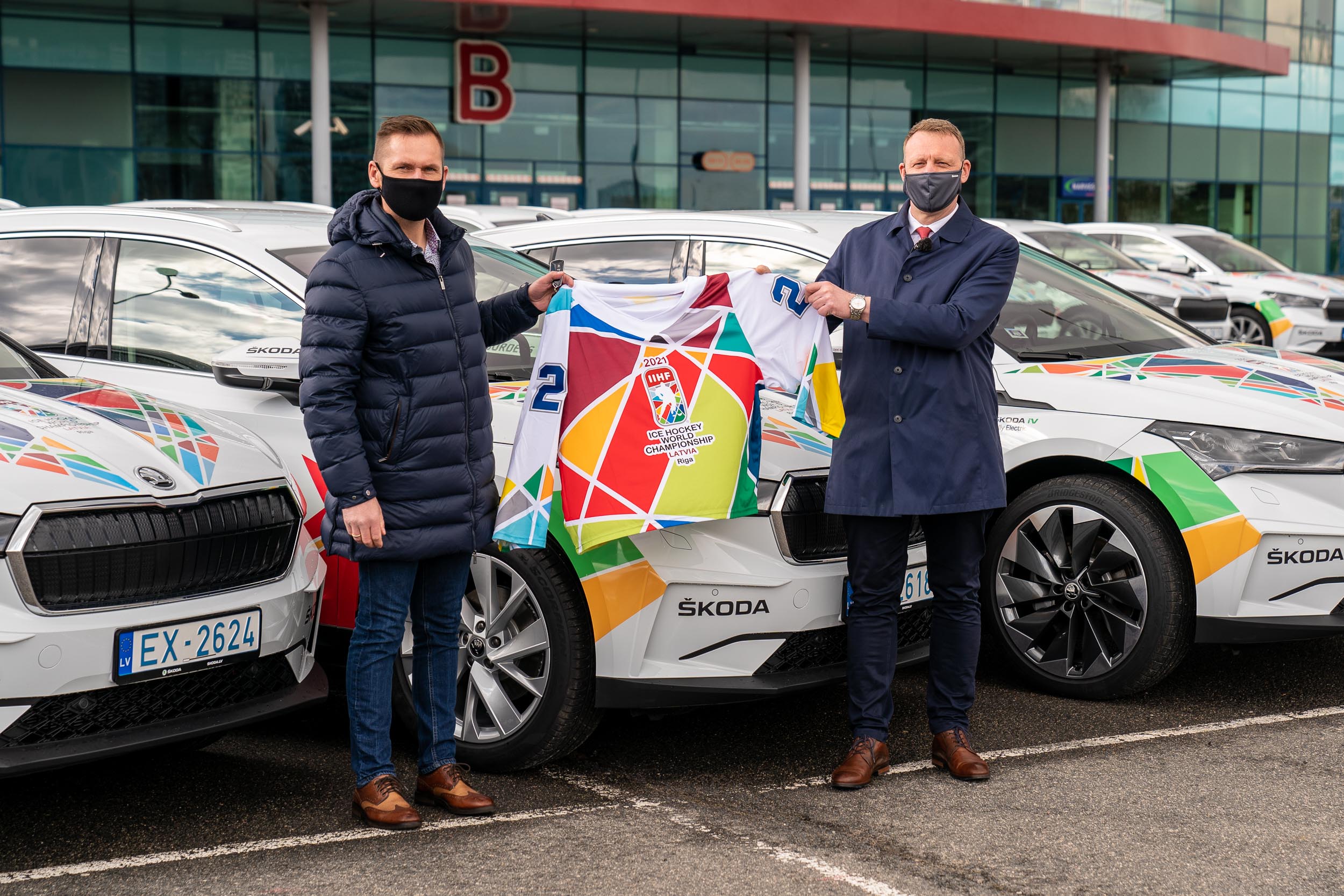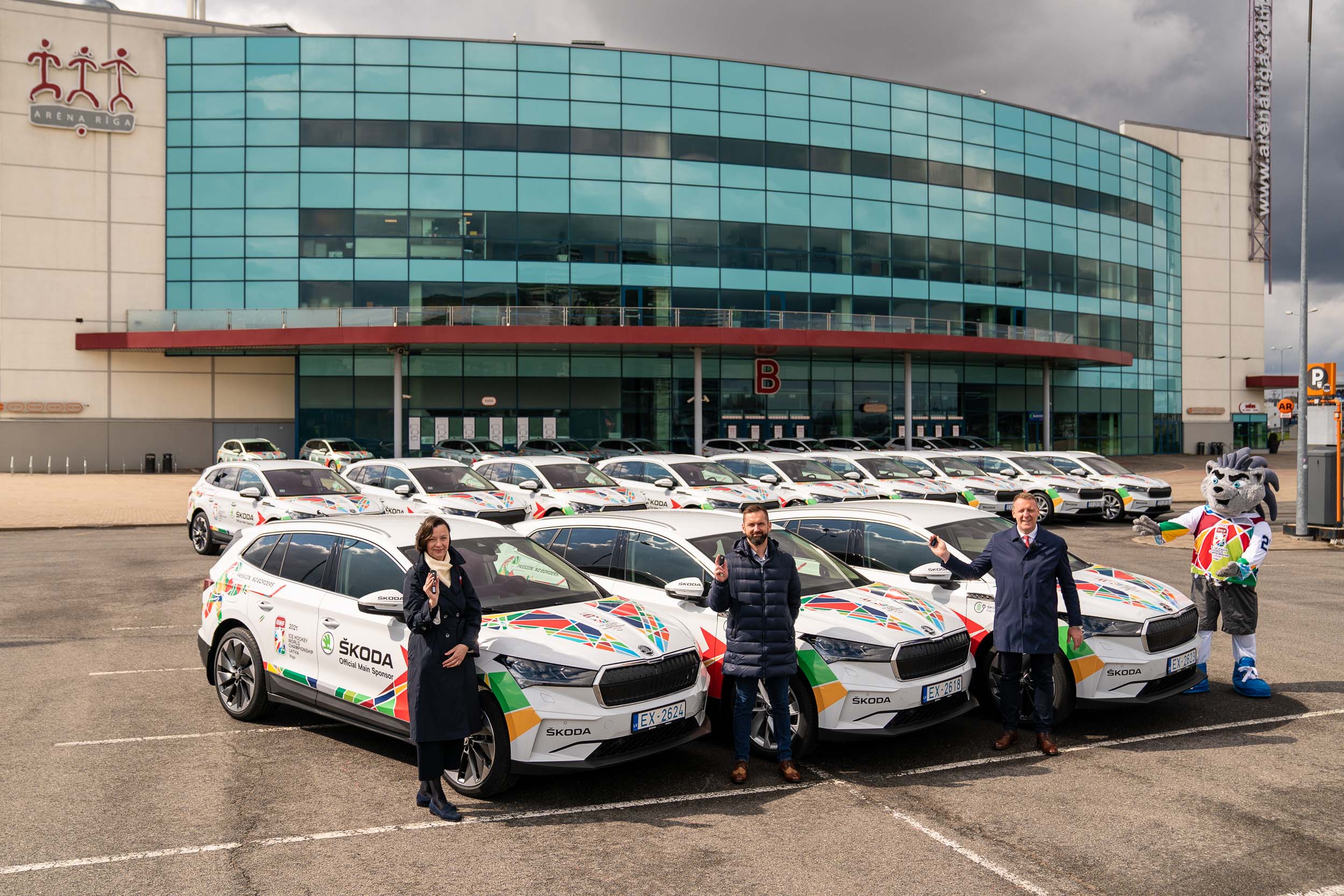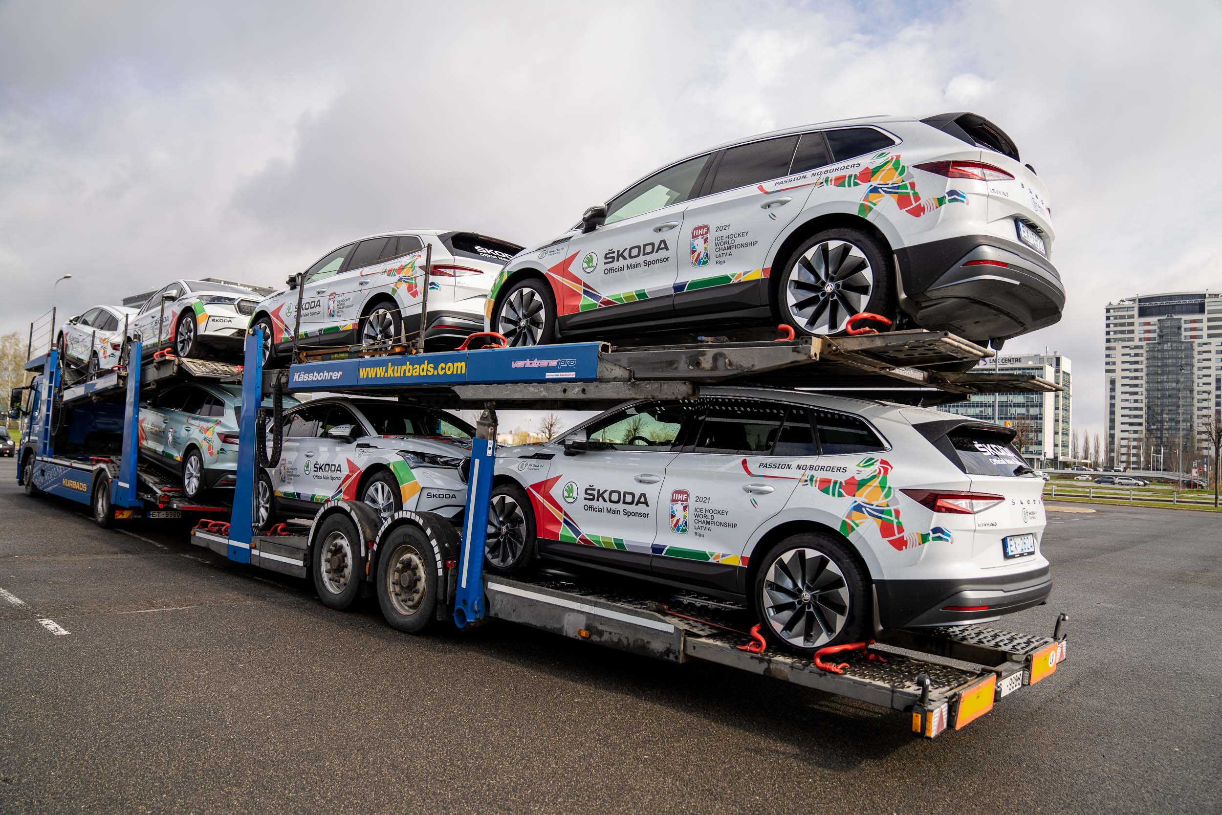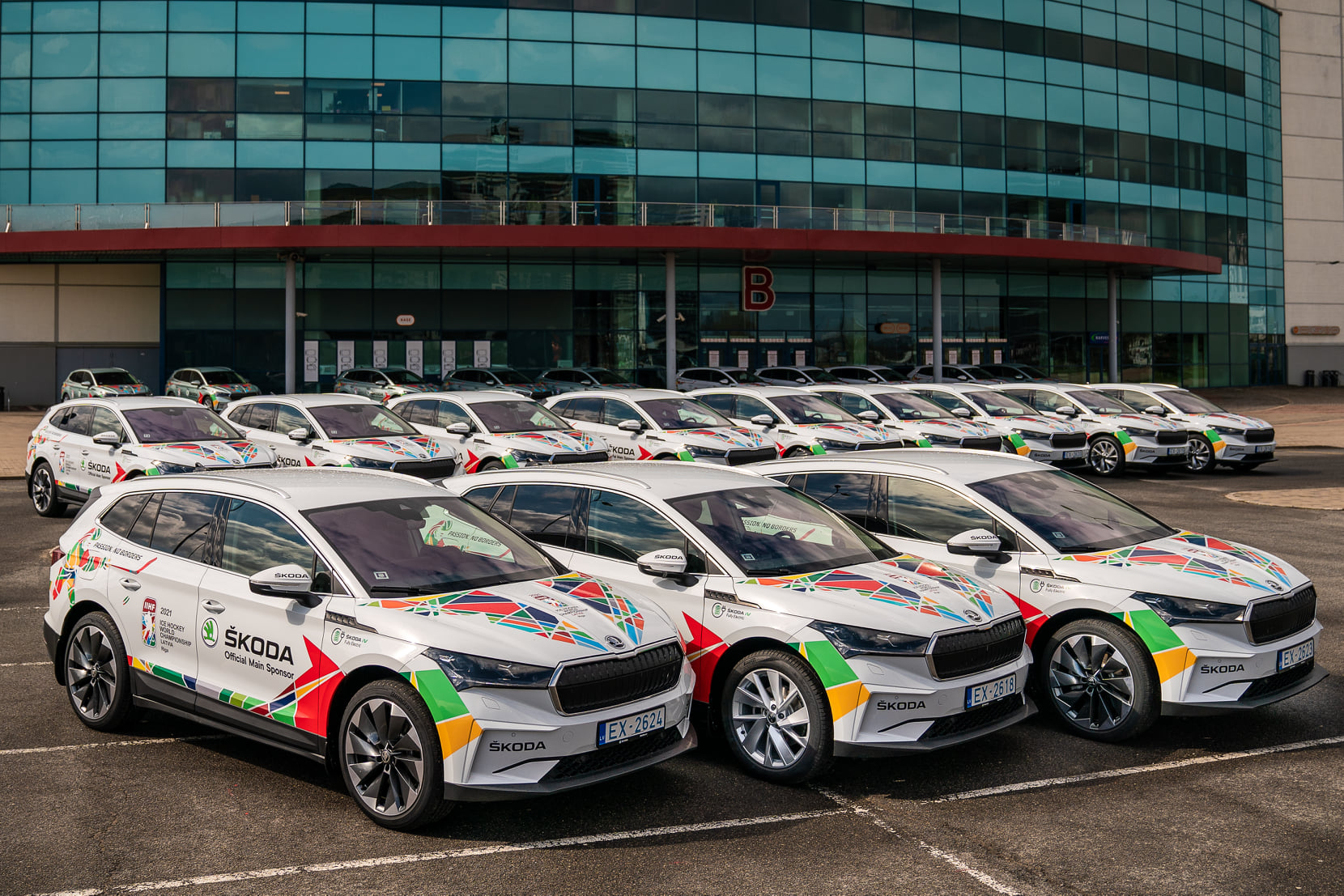 Pirmo reizi ŠKODA zīmols čempionāta organizatoriem nodrošina pilnībā elektrisku autoparku, kas sastāv no 45 ENYAQ iV, ar kuriem turnīra organizatori un dalībnieki pārvietosies uz Pasaules Čempionāta arēnām, mītnes un treniņu vietām. Uz automašīnām ir ŠKODA AUTO – oficiālā galvenā sponsora un 2021. gada Pasaules Čempionāta logotipi. Pilnu auto nodošanas procesu skatiet zemāk izvietotajā video.
