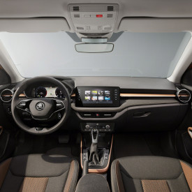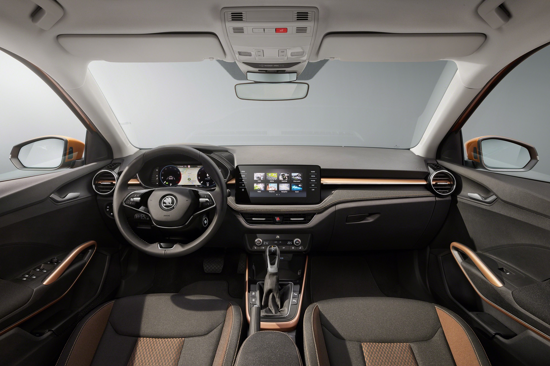 Ietilpīgais interjers tagad ir arī vēl klusāks, pateicoties uzlabotai skaņas izolācijai. Savukārt jaunie materiāli un dizaina iezīmes, kas parasti sastopamas augstāka segmenta automobiļos (piemēram, Ambient salona apgaismojums vai kontrastējošās polsterējuma šuves), un FABIA atjauninātās tehnoloģijas padara automašīnas lietošanas pieredzi vēl aizraujošāku un drošāku.