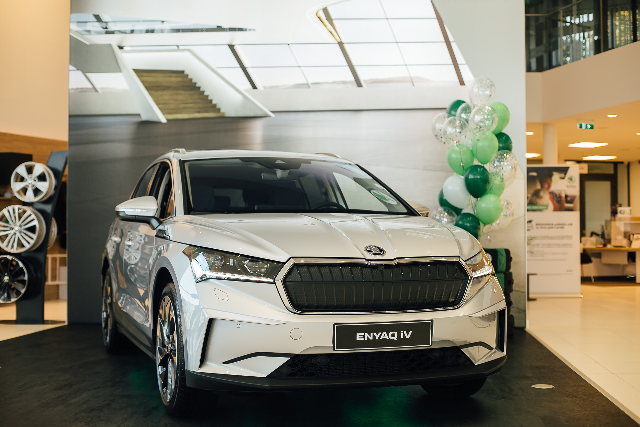 Šis ir pirmais ŠKODA elektroauto, kas būvēts uz Volkswagen Group MEB modulārās elektroauto platformas, ļaujot nodrošināt labu nobraucamo attālumu un jaudu, kā arī kvalitāti. Klātienē bija apskatāms ENYAQ iV 80 ar 150 kW maksimālo jaudu. ENYAQ iV, kā zināms būs pieejams 5 modifikācijās:
