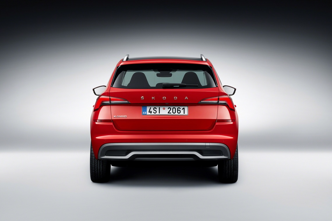 ŠKODA KAMIQ priekšpusi raksturo plats radiatora režģis ar dubultiem stieņiem un izteiksmīgām līnijām uz dzinēja pārsega. Spēcīgs priekšējais spoileris uzsver automašīnas bezceļu raksturu. Kompaktais sānu daļas izskats ar lielajiem 16 līdz 18 collu riteņiem un pacelts dzinēja pārsegs izskatās robusti un dinamiski; jumta līnija un augstais klīrenss pastiprina kopējo iespaidu. Sānskatā redzamas sabalansētas proporcijas un monumentāls dizains, kas apvienots ar dinamisku un sportisku izskatu. Aizmugurējo daļu rotā ŠKODA tipiskie C formas lukturi. Izkliedētājs akcentē automašīnas lielo klīrensu un jaudīgo izskatu.