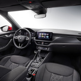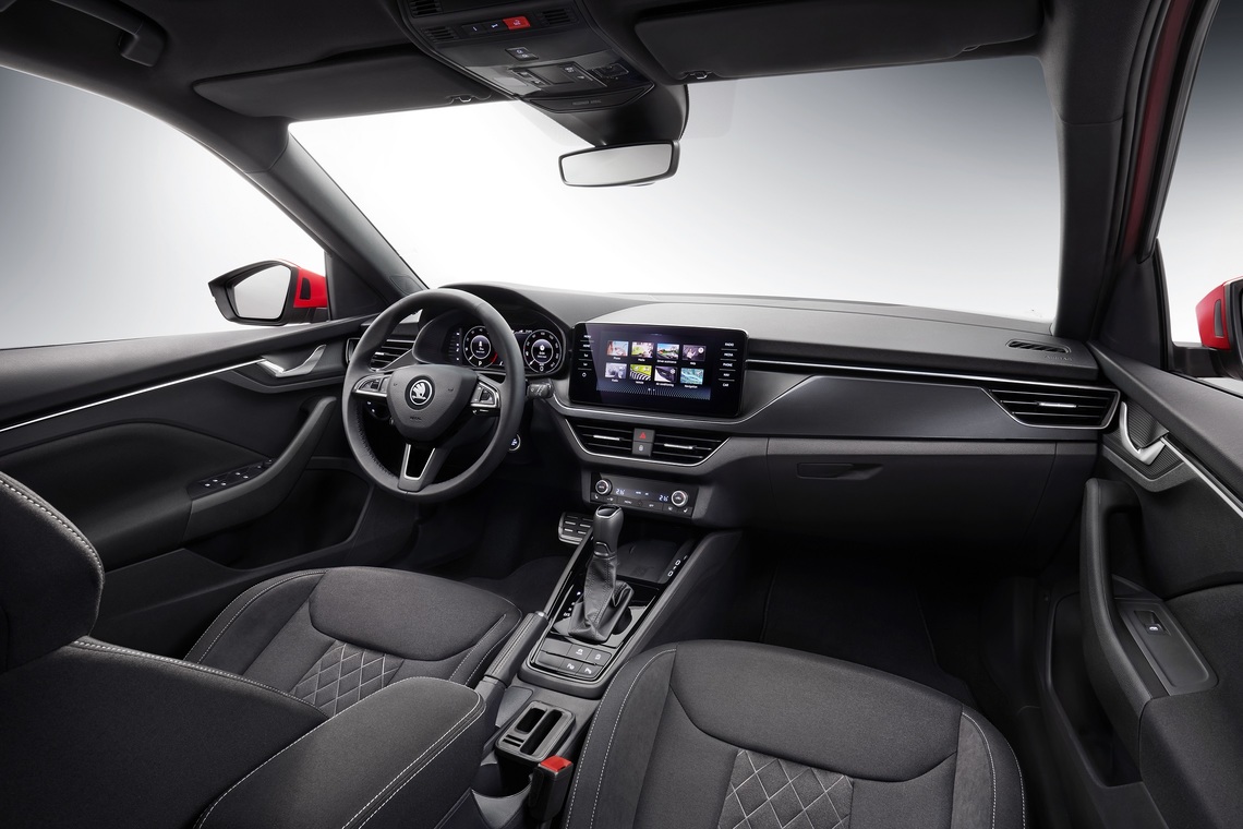 Priekšējais panelis ar jaunajiem dekoratīvajiem elementiem, kā arī priekšējo durvju apdare veidoti no augstas kvalitātes, mīkstas putu materiāla virsmas ar jaunu, specifisku virsmu ar tekstūru, kas atgādina kristāla līniju struktūras. Šāds dizains veidos arī nākotnes ŠKODA zīmola stilu. Trīs krāsās: baltā, sarkanā un vara; pieejamais vides apgaismojums palīdz nodrošināt patīkamu atmosfēru telpā. Tas piešķir vizuālus akcentus sēdekļu apdares krāsojumam un šuvēm. Papildaprīkojumā iespējams izvēlēties ekskluzīvo Suedia mikrošķiedras sēdekļu apdari.
