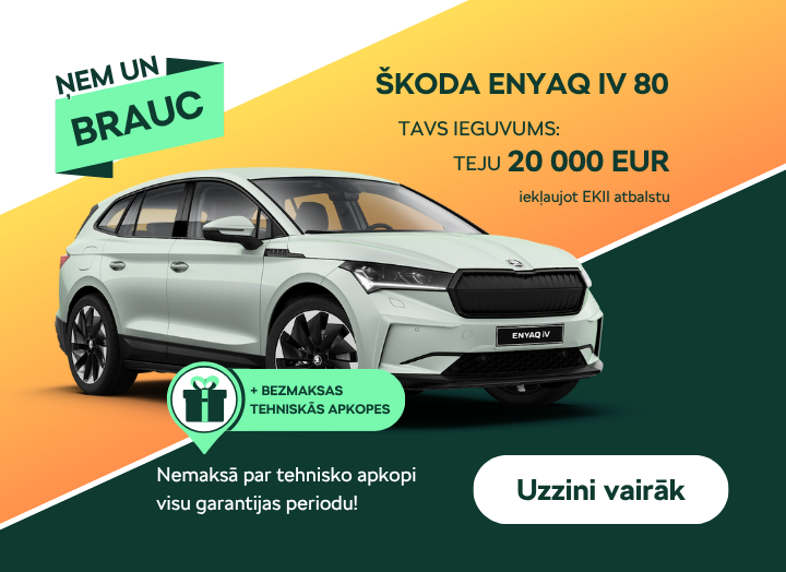 Iegādājies ŠKODA Enyaq iV 80 un iegūsti teju 20 000 eiro, kā arī garantijas periodā – tehniskās apkopes dāvanā!