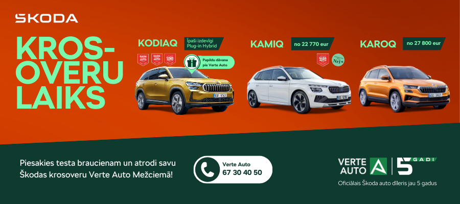 Škoda auto dīleris Verte Auto piedāvā plašu Škoda automobiļu klāstu, kas pielāgoti dažādām vajadzībām un dzīvesveidam. Ja meklē praktisku, elegantu un jaudīgu krosoveru, Škoda piedāvā vismaz trīs izcilas izvēles: Škoda Kamiq, Škoda Karoq un Škoda Kodiaq iV. Škodas krosoveru laiks ir īstais brīdis, lai izvēlētos tieši Tev piemērotāko no krosoveriem!