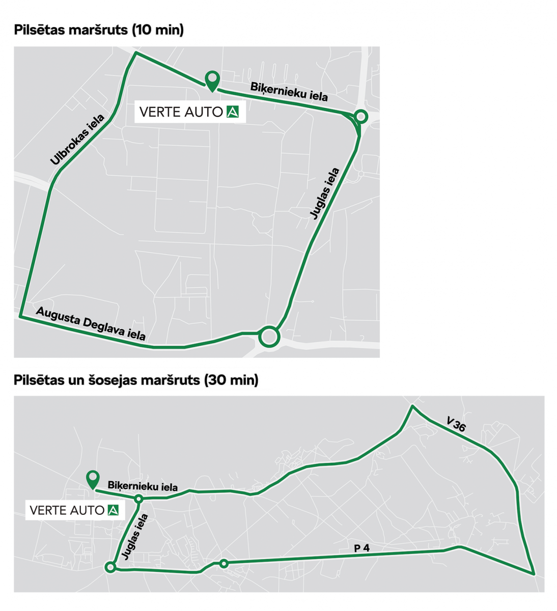 Jūsu ērtībām esam sagatavojuši divus maršrutus - aptuveni 10 minūšu braucienu pa pilsētu vai 30 minūšu braucienu, kas ietver gan pilsētas ielas, gan šoseju.